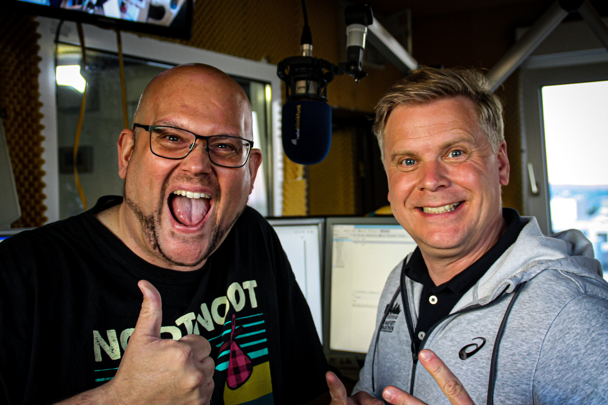 Klinikfunker Dieter Wagner und Klinikfunkerin Caro Strohbehn verabschieden am letzten Tag das alte Studio.