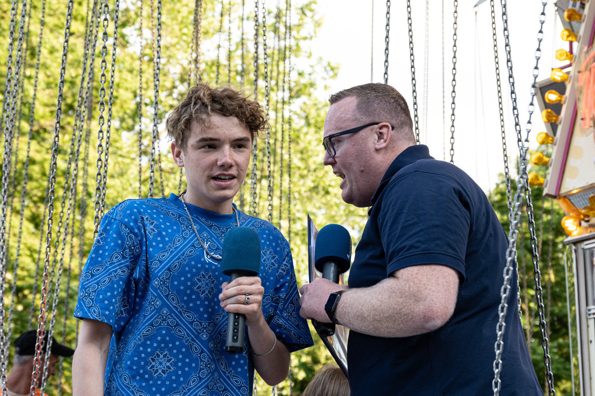 Ohne dieses Team geht gar nichtsDie „On Air Tour“ (OAT) gibt es bereits seit 2022. In der allerersten Sendung, zu Fronleichnam 2022, machten sich Christopher Neef und Max Löser mit Klinikfunkerin Caro Strohbehn von Frankfurt auf den Weg nach Wiesbaden. Damals saß Christian Spangenberg an den Reglern im Studio. Fortgesetzt wurde die Reihe im Dezember 2022 – auf dem Wiesbadener Sternschnuppenmarkt. Damals vor Ort: Paul Ruschke. Nach der Sommer-Tour 2023, auf dem Wiesbadener Theatrium gibt es jetzt die nächste „On Air Tour“. Dieses mal war Kevin Schößler mit dabei, der Fotos und Videos geschossen hat. Wie auch schon in den vergangenen Sendungen wurde die Sendung aus unserem Studio in den Helios Dr. Horst Schmidt Kliniken „gefahren“.